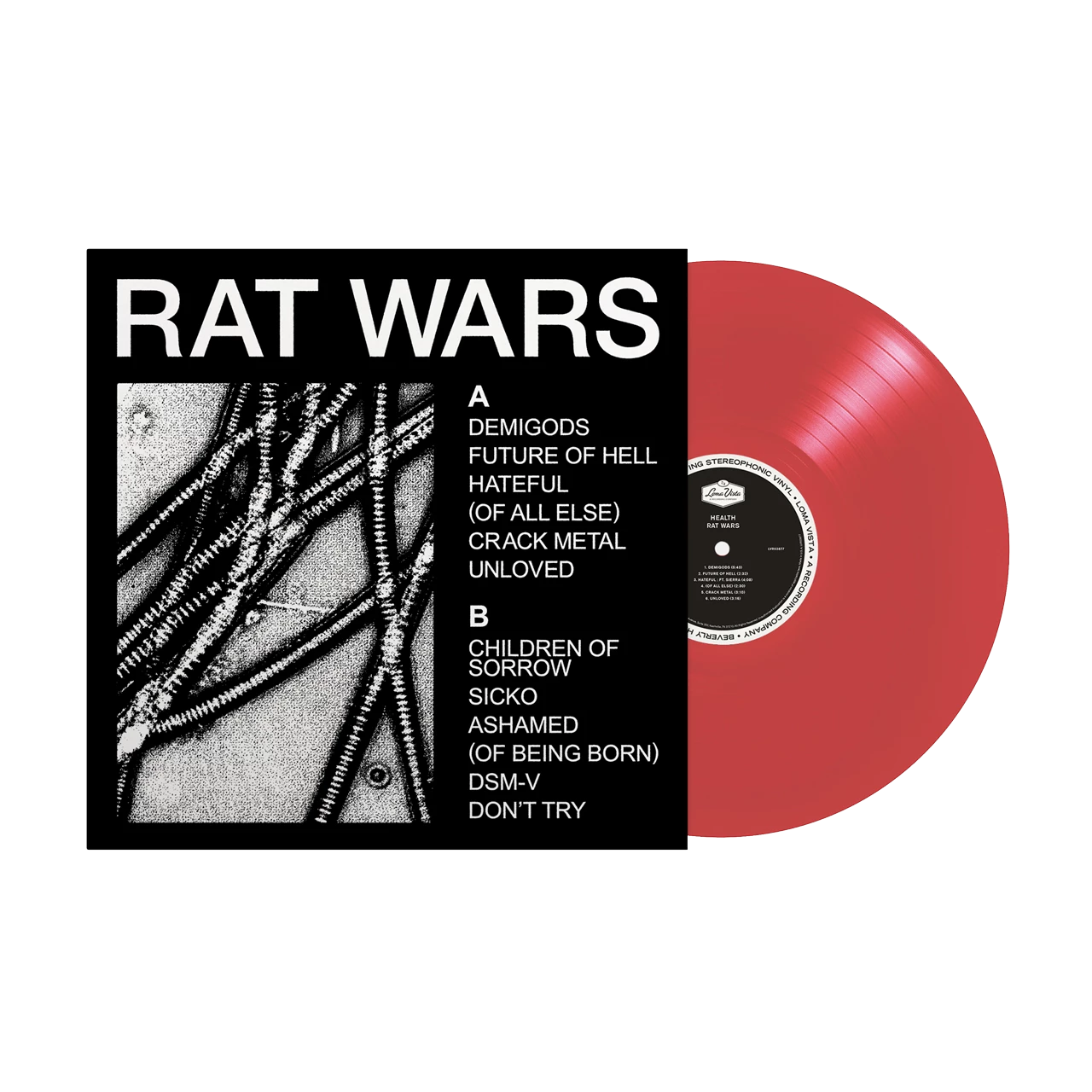 The L.A. industrial-rock band HEALTH's album 'RAT WARS' is the most violent yet vulnerable LP of their career. It is somehow fitting that such a brutal collection of songs is at the same time their most comprehensive artistic statement. Meticulously aggressive production detail collides with painfully personal confessions and a strange savage grace is paired with icy gallows humour... surprisingly it's still fun as hell. 'RAT WARS' joins the lineage of ground-breaking heavy acts like Nine Inch Nails and Ministry, which re-drew the borders between metal, electronic and pop music. It also speaks directly to the band's young, fervent online subculture. It's The Downward Spiral for people with at least two monitors and a vitamin D deficiency. Written during the most emotionally trying period of the band's life, the album builds on their chaotic yet re-invigorating pandemic years. In that time, HEALTH cut dozens of tracks with heroes and inheritors like Nine Inch Nails, Lamb of God, 100 Gecs, Poppy, and Pertubator on DISCO4. 'RAT WARS' captures all the fury and ambition their LP's have until now aspired to. It's their boldest statement on the insanity and the insipidness of contemporary life.